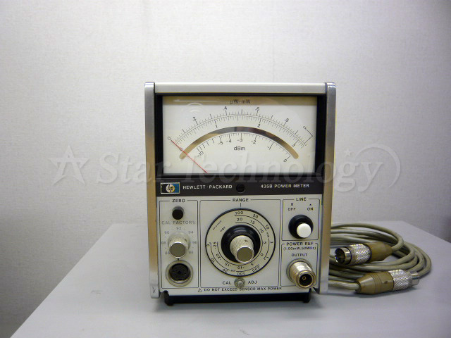 アナログ・パワー・メータ本体, 100KHz~110GHz (センサによる), パワーレンジ:-60~+44dBm (センサーによる), 本体確度±1%, 基準発振器出力: 50 MHz/1mW、付属品:センサ・ケーブル(3m)1本付き(PN:8120-2264)、電源コード 435Bはアナログ指示のパワー・メータでKeysight 8480シリーズの全てのパワー・センサが使えます 後継機種:E4418B, E4419B