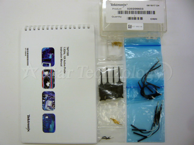 1.5GHz アクティブ・プローブ、帯域幅:1.5GHz、減衰比:10:1、上昇時間:267ps、 最大動作電圧:±8V、入力抵抗/容量:1MΩ/1pF、TekVPI入力専用、付属品:取扱説明書